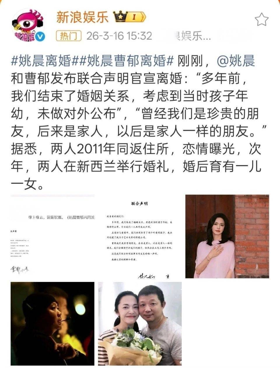 两人之所以不愿意因为离婚拆分事业,本质上是因为利益绑定实在太深。曹郁手握顶尖的影视视觉资源,姚晨有强大的市场号召力和资本人脉,两人联手就是行业内的黄金组合,真要是拆伙损失难以估量。2025年两人共同监制的电影还斩获了柏林电影节最佳导演奖,当时两人已经不是夫妻,只是纯粹的商业合作伙伴。
