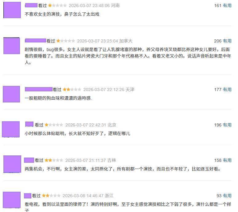 可以说,这部剧为了制造矛盾冲突完全不顾剧情逻辑,女主人设也相当不讨喜,大女主可不是这种打开方式,编剧怕不是理解错了吧。