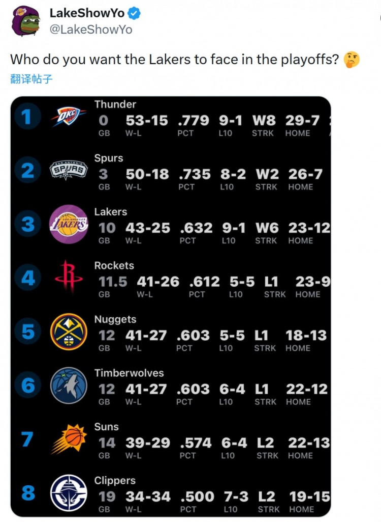 手机股票配资网 或打火/掘/狼/日!湖媒:大家希望湖人在季后赛首轮打哪队?